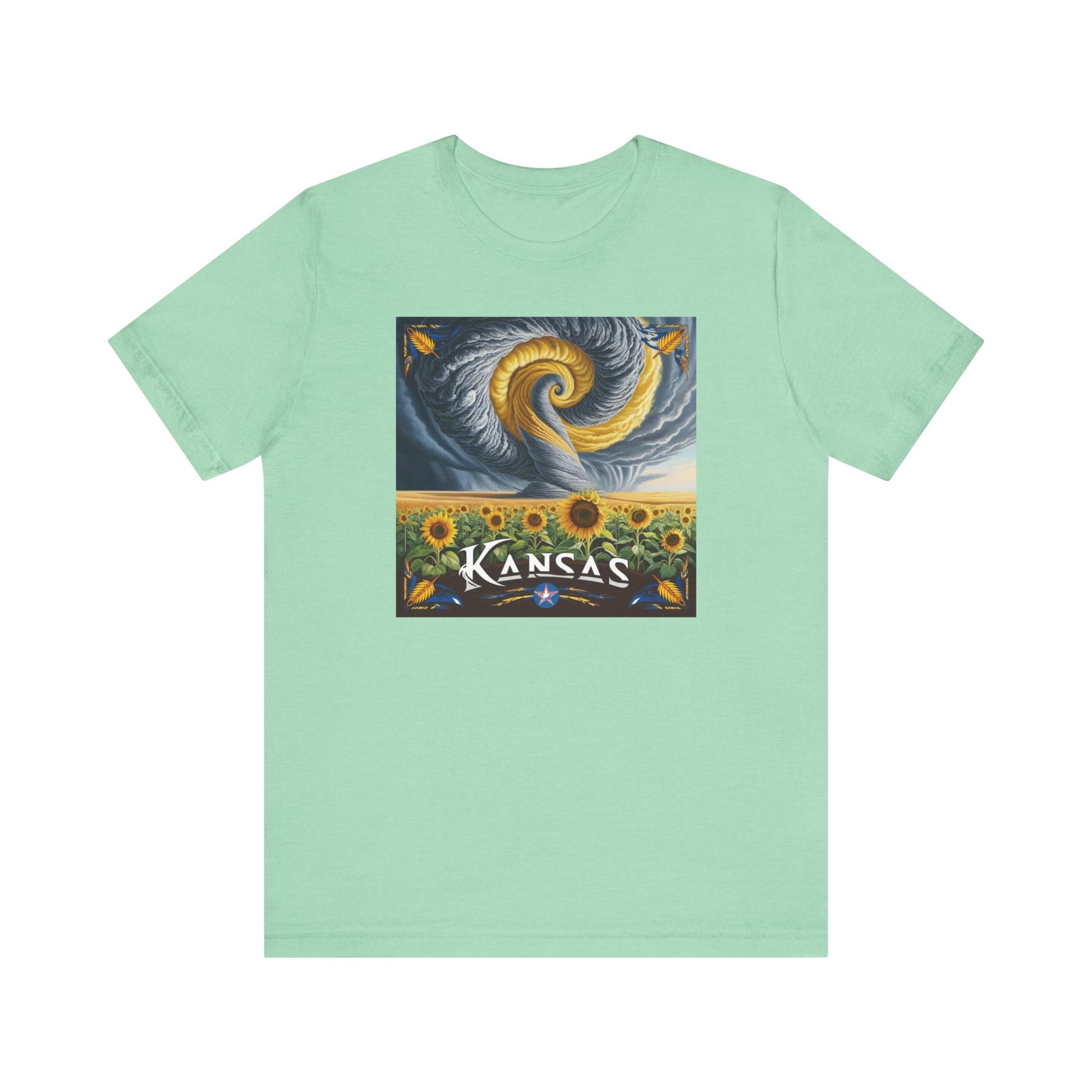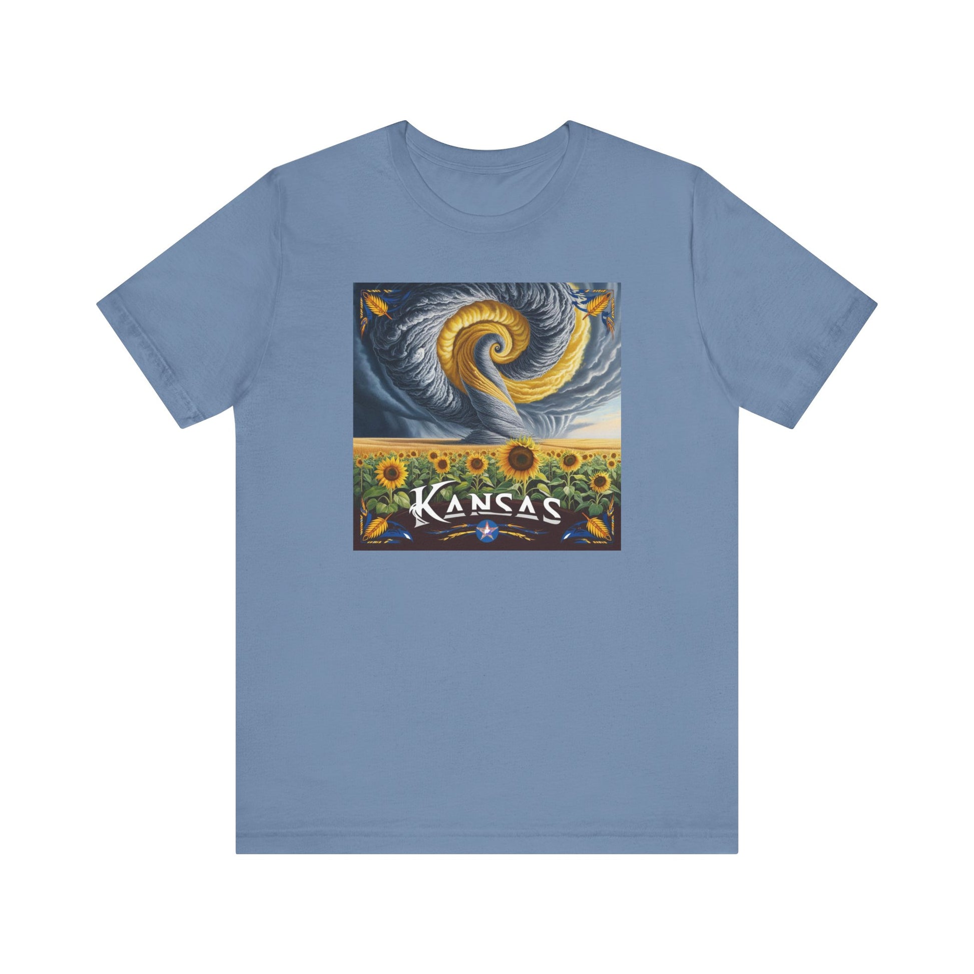 Introducing our unique Kansas Sunflower Graphic Unisex Jersey Short Sleeve Tee, designed to celebrate individual style and creativity. This comfortable tee features an eye-catching graphic that adds a splash of personality to any outfit, perfect for casual outings or relaxed hangouts. Made from 100% Airlume combed and ring-spun cotton, this lightweight and breathable fabric ensures you stay comfortable all day long.