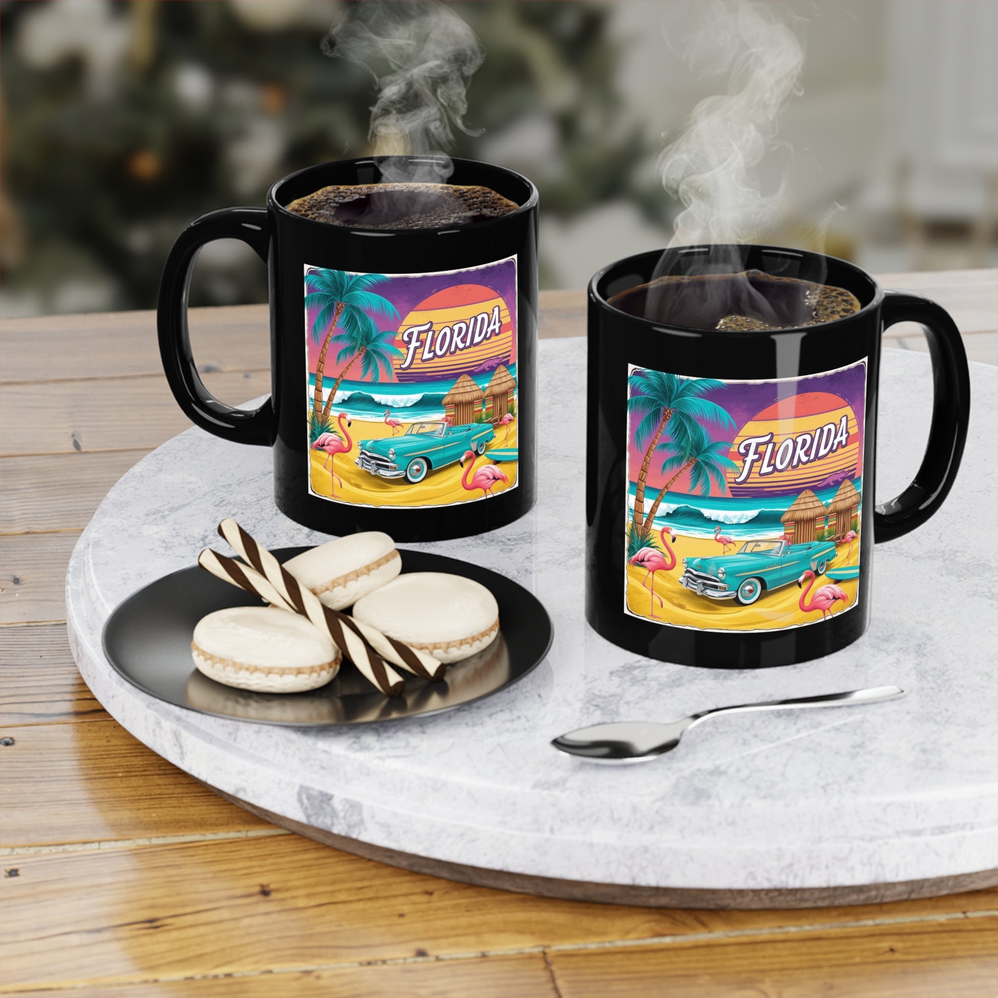 Vintage Florida Flamingo Coffee Mug - 11oz Black Cup for Beach Lovers