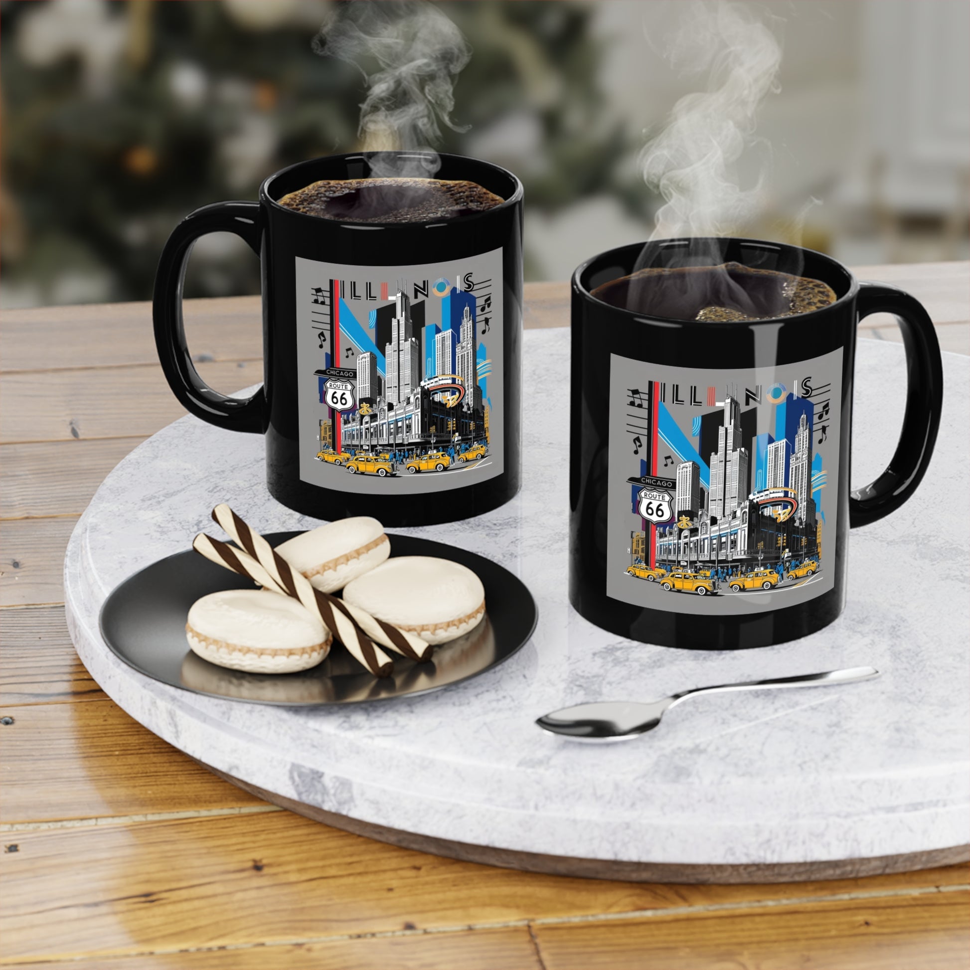 Vintage Route 66 Black Coffee Mug - 11oz Illinois Travel Souvenir